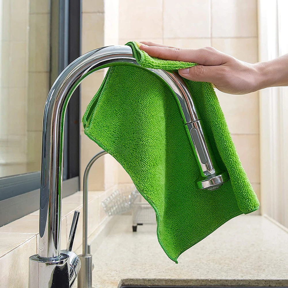 Our premium microfiber towels are made from advanced synthetic fibers. The fabric is ultra-absorbent and dries rapidly. The quality ensures that the towel performs consistently even after many wash cycles. The green color remains vivid, enhancing the visual appeal of cleaning operations. Guests and staff alike appreciate the superior performance of these towels.