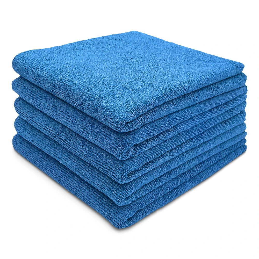 Our blue microfiber towels are crafted from premium synthetic fibers. The fabric is soft, highly absorbent, and quick-drying. It efficiently removes dust and moisture from surfaces. The material retains its bright blue hue even after repeated washing. This quality is vital for maintaining a fresh appearance in busy hospitality environments.